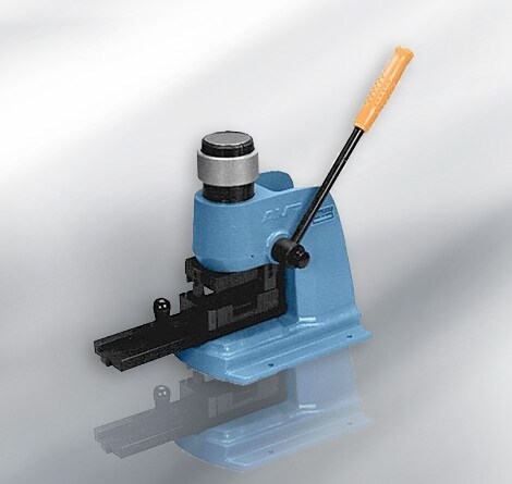 With the pull of a lever, these presses deliver force for staking, riveting, and removing bearings and arbors. The removable rotating base-plate press accommodates shafts and arbors with different diameters.